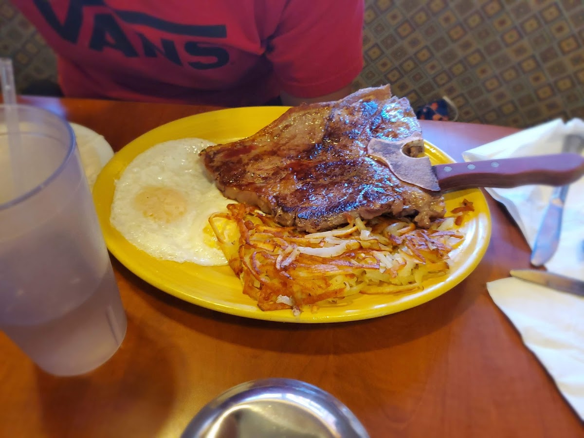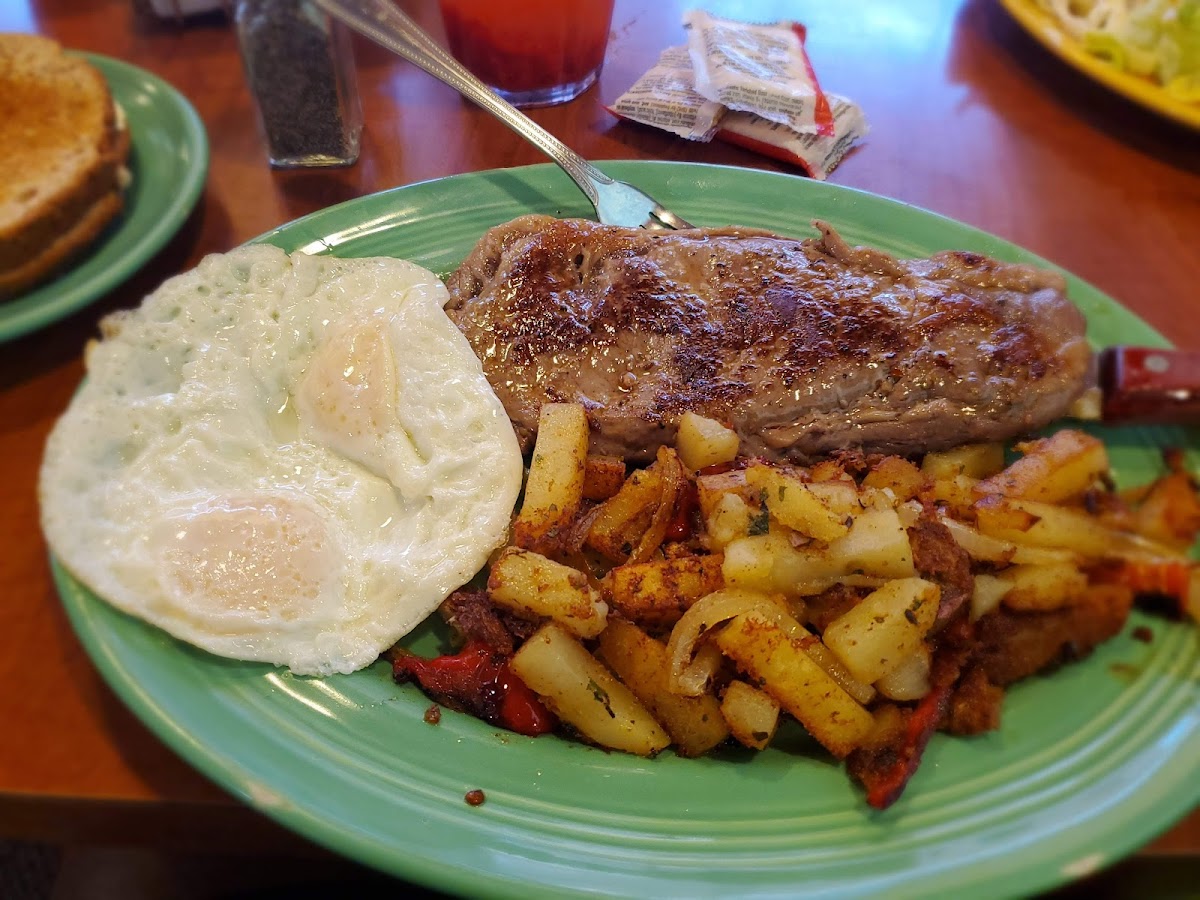 This full-service family restaurant serves up generous portions of classic breakfast staples and American dishes, from omelettes packed with cheese, spinach, and mushrooms, to skillet meals like the Denver Skillet or the Chicken & Cheese Omelette that feel like a proper start to a day. The menu’s variety supports everything from casual family brunches to filling lunches, featuring reliably cooked eggs, homemade-style dishes like Chicken Fried Steak with gravy, and weekend specials such as all-you-can-eat fish and chips on Fridays.